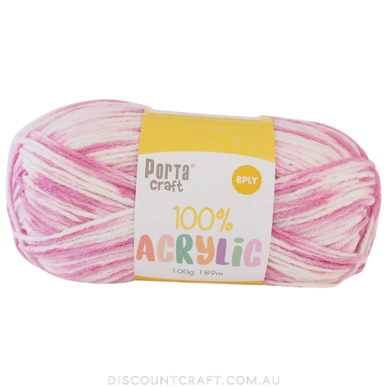 Acrylic Yarn 100g 189m 8ply - Variegated Pinky Pie
