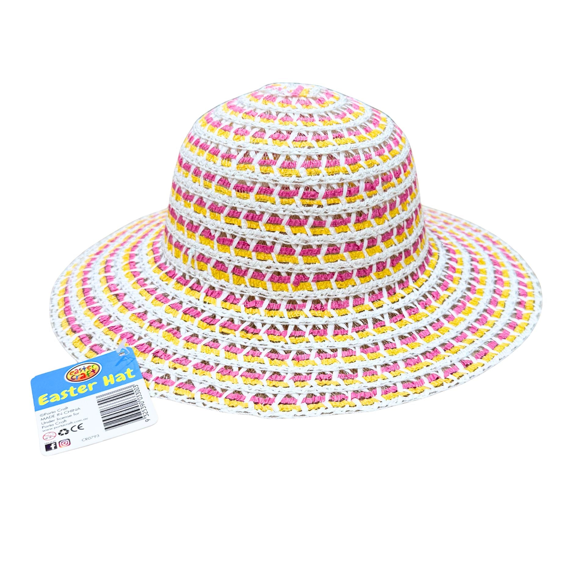 This classic Easter Bonnet Hat in this Pink/Yellow Colourway (SKU: CR0793) is a simple, versatile base for Easter bonnet parades, costume days and school events. Sold individually, the 30cm size fits comfortably on most children and provides a neutral foundation ready to personalise with flowers, ribbons, faux eggs, craft shapes and other Easter decorations.