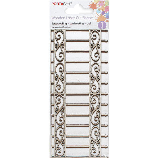 This Laser Cut CB Fence Fancy from Porta Craft is a beautifully intricate wooden embellishment designed to add a touch of elegance to your craft projects. Whether you're working on scrapbooking, card making, or any other creative endeavour, this versatile piece will elevate your designs with its charming details and natural finish.