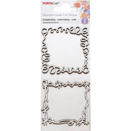 This Laser Cut CB Frame Doodles 70x70mm 2pk is a charming duo of wooden embellishments perfect for adding a personal touch to your crafting projects.
