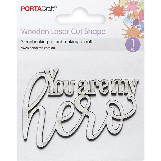 This Laser Cut "You Are My Hero" wooden shape is a charming addition to your craft projects. This delightful piece, crafted by Porta Craft, makes it easy to express appreciation in your scrapbooking, card making, and various crafting endeavors.
