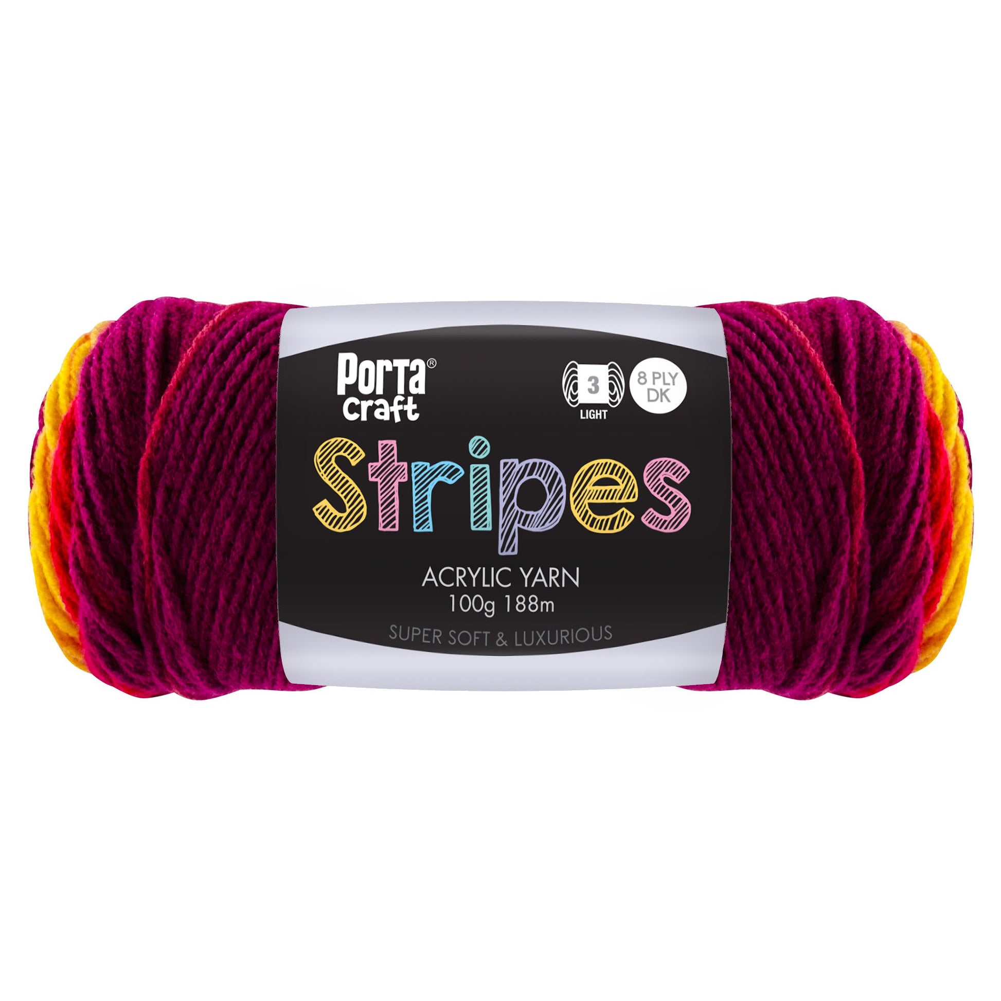 Stripes Acrylic Yarn 100g 188m 8ply - Fruity