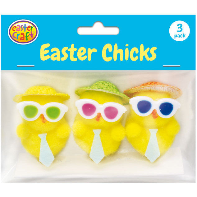 Yellow Easter 6cm Chicks with Ties & Coloured Glasses - 3 Pack